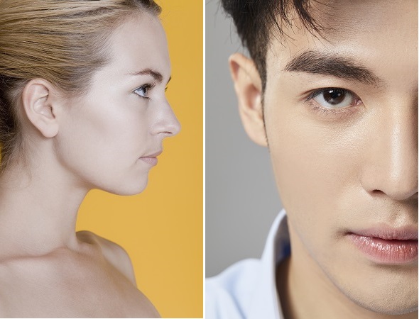 여성과 남성은 피부 조직과 두께, 미간과 콧대를 이루는 각도 등이 모두 차이가 나므로 이와 같은 세부적인 부분을 고려해서 다르게 접근을 해야 한다. 여성은 부드러운 라인에 오똑한 콧대를 선호하므로 측면 라인이 이마에서부터 콧대와 코끝 및 입술 아래의 턱 끝까지 자연스럽게 연결되어야 한다. 과도하게 보형물을 삽입하지 않으면서 얼굴의 이목구비에 맞게 디자인을 해야 한다.